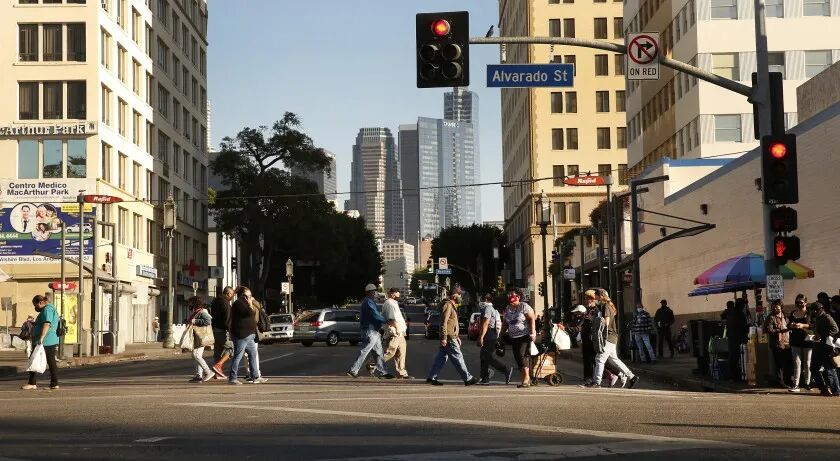 图:南加州走在街头的人们 (来源:洛杉矶时报)