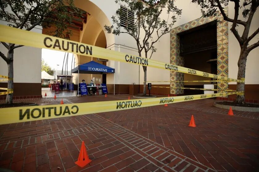 图:联合车站的新冠检测点 (来源:洛杉矶时报)