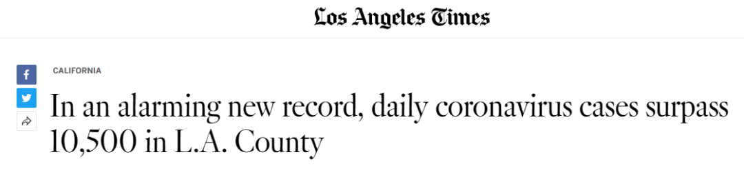《洛杉矶时报》报道,新冠疫情已经导致了两万加州人死亡,感染病例飙升至前所未有的数字,经济进入危险阶段,加州大部分地区开始了宵禁。然而没有任何迹象表明疫情会放缓。