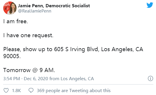这名女子自称是民主社会主义者,名叫杰米·佩恩(Jamie Penn),在去年11月当选该职位。她在社交媒体上宣布了参加活动的计划,后来在下午3:54发布的一条推特上证实自己已被释放。