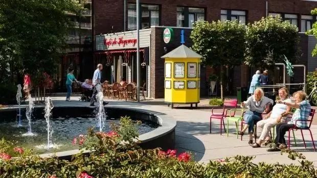 阳光温暖的广场,物品丰富的超市,浪漫慵懒的酒吧,60年代风情的咖啡厅…… 从各种建筑、设施来看,这个位于荷兰阿姆斯特丹的小镇,并没什么异样。 清晨,老人们逗猫遛狗; 午后在花园饮茶; 夕阳中相互搀扶着回家。 岁月静好,现世安稳,一切看起来都是人们理想中的模样。 看上去就是个普通小镇嘛。 但是,悄悄告诉你,这一切都是假的!假的! 镇子是假的,大概有10个足球场大小的地方,只留一个玻璃大门,任何人都不能随意出入。 超市、饭店、邮局是假的,没有价签、不用花钱。 邻居、理发师、收银员甚至行人都是假的,甚至医护人员也是乔装打扮的,换句话来说:除了失智的老人以外,其他人都是专业护工。 他们完美诠释了“人生如戏,全靠演技”。 这个“假”镇子是一家大型养老院,也是全球第一个专为阿尔茨海默症(老年痴呆)老人建立的“温暖照护小镇”。 没有高耸的院墙,也没有冰冷的病房。 老人们6、7人住一间房子,每间房子配有2名护理人员。 由于失智老人的记忆,通常会停留在童年和青年时期,所以为了减少病人对于新环境的抵触和焦虑,公寓装饰参照的是20世纪50年代的设计风格。 城市、贵族、商务、居家、文化和宗教风格,采用不同的设计,以确保老人的居住风格与之前的风格类似,降低他们的焦躁感。 挂在墙上的黑胶唱片,古典花纹的桌布和座椅,甚至连窗帘的色调与装饰,都尽量去还原那个时代,让老人的内心更加安定。 而这些护理人员,都变装成邻居、店员、家政,全天24小时守护着老人们,和他们建立亲密的关系。 这里的老人们不会听到:“你又忘记这个那个了,你的身体情况又不行了,你该老老实实地吃药了……” 走出房间,老人们也是自由的,像正常人一样生活,做任何想做的事情,去任何想去的地方。 和邻居一起做家务,偶尔不想做饭,相约出门吃大餐。 去超市大采购,不用拿钱算账,不论买什么收银员都只是走过场,然后报以真诚的微笑。 换个青春靓丽的发型,“理发师”会懂你的意思。 不用担心出门回不了家,也不用担心被陌生人拐跑,总有位善良的“路人”伸出援助之手。 上一堂烘焙课,学做面包,这里没有病人、也没有老人,只有心灵手巧的糕点师。 妻子每日来看望丈夫,为他温柔地弹奏着钢琴,诉说着只有两个人懂的私语,琴键上缓缓淌出的音符,是他们爱恋的秘语。 镇子唯一的出入口,是一扇厚厚的玻璃门,足以保障老人不会走丢,天气好的时候,这里对外开放。 附近学校的孩子们组队来看望老人,给他们讲有趣的事情,相信温暖的关照比吃多少药都管用。 虽然不少的老人,失去了思考的能力,行动起来也极为不便。 但在这里,不会产生被隔离的感觉,还是像社会的一份子,有尊严的活着。 小镇最初的灵感,来自于一位普通护工Yvonne Van Amerongen。 Yvonne曾在失智老人护理中心工作,她亲眼看见有血有肉的无辜老人,在最后的岁月里,像是犯了错的孩子,茫然与无措。 某一天,当她接到母亲电话,“你的父亲突发心脏病去世了……没受什么苦,走得很快。”悲痛之余,却有几分欣慰,“谢天谢地,爸爸不用去养老院了。” 而父亲的离世,也激发了她内心的想法,能不能创立一所养老院?让老人们像正常人一样生活,快乐地度过最后的时光。 终于,在2009年,这个想法成为了现实,霍格威的顺利落成。 建造花费了1930万欧元,其中1780万来自政府支持,其余的来自民间的募集组织。 每天24小时的看护,让老人们感受到由衷的自由和快乐。 研究显示,住在霍格威的失智症患者服用较少的药物,他们胃口更好、更有活力。  Korongee小镇