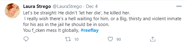 坦率地说:他没有“让她死”,是他杀死了她。我真的希望有个地狱在等他,或者监狱里有一个又强大又暴力的囚犯在等着他。他毁了一切。