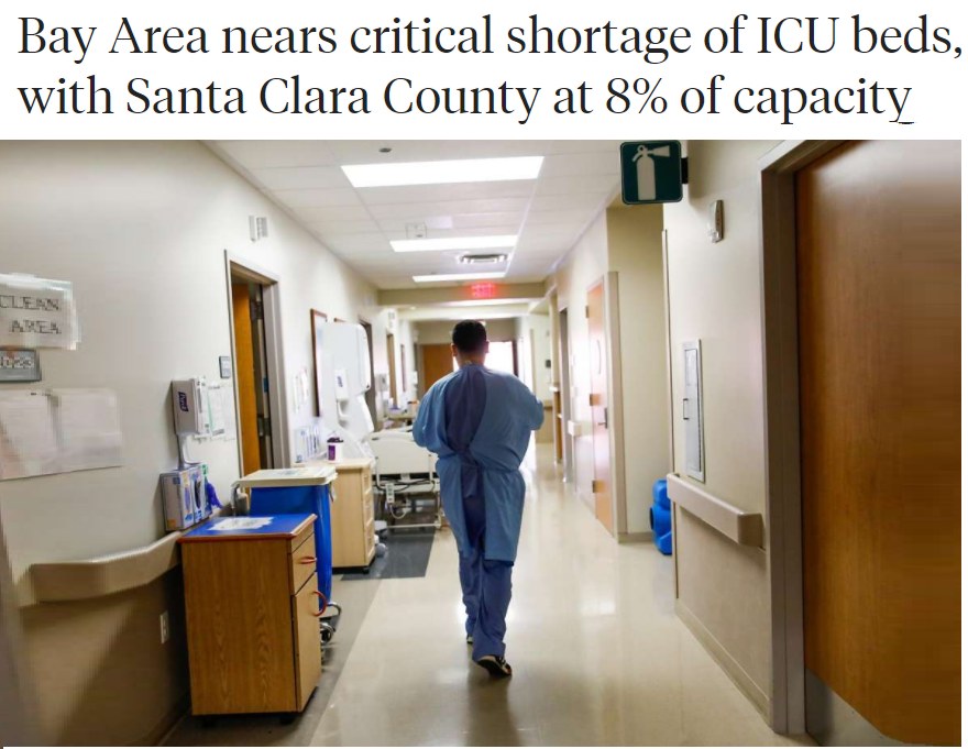 南湾三大医院爆满, Santa Clara 全县仅存31张ICU病床