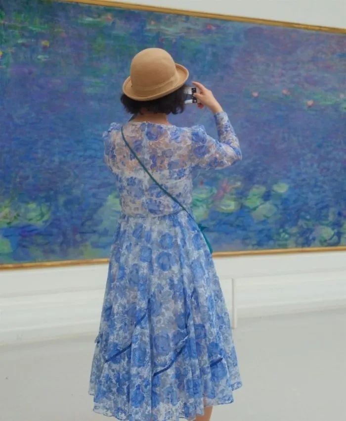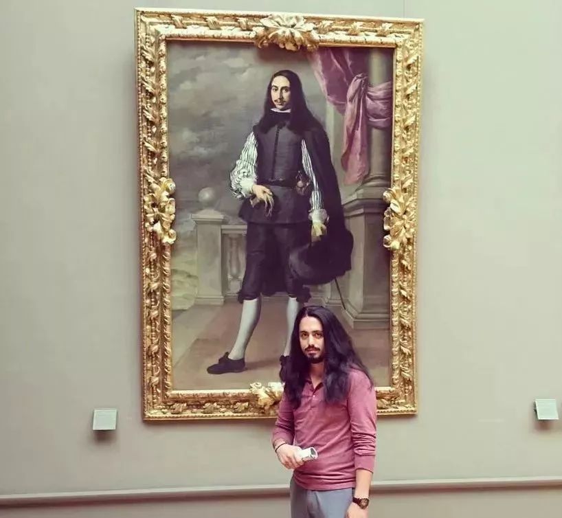 让人惊叹真是太奇妙了,穿着相似的衣服经过相似的画作前,估计灵魂都会在瞬间出窍,穿越到画里吧。