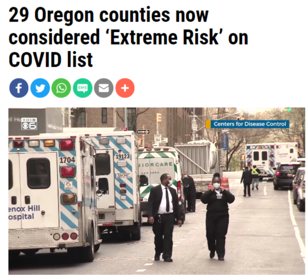 [波特兰新闻]俄勒冈州29县陷入「新冠极端风险」禁止堂食、室内活动