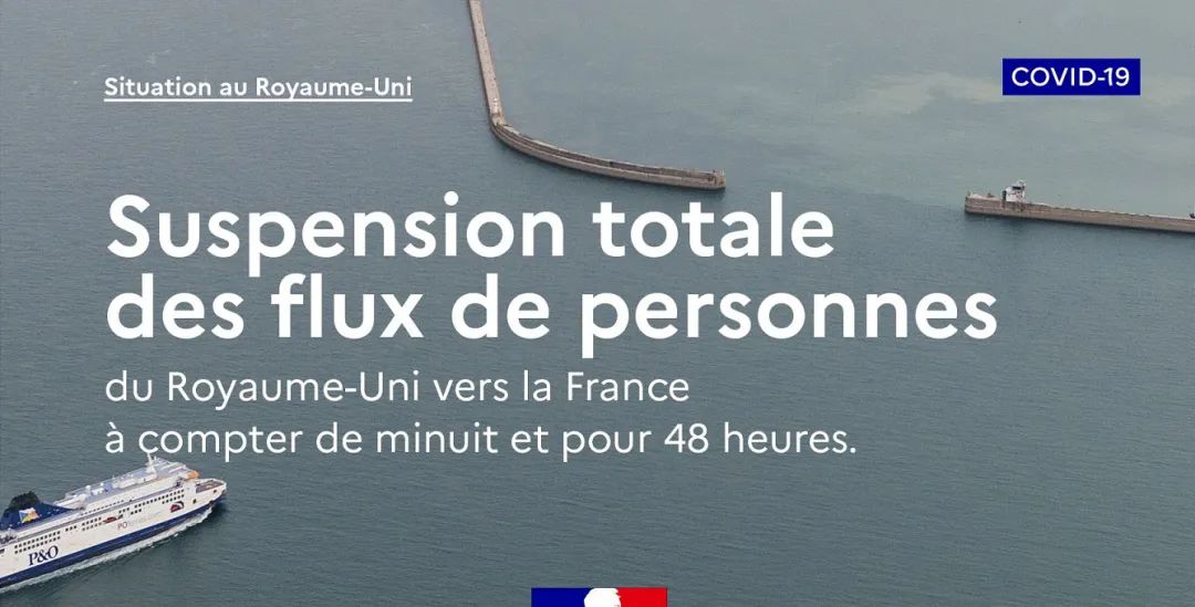 当地时间20日晚,法国政府交通部长让·巴蒂斯特·杰巴里宣布从20日午夜起,法国暂时禁止来自英国的航班、列车和轮渡运输入境48小时。但前往英国的人员和交通运输不受限制。