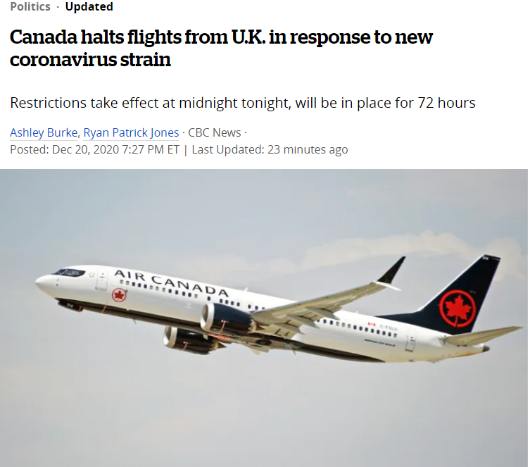 同时,有消息称72小时后加拿大或将无限期禁止来自英国航班入境!