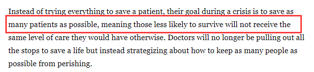 这意味着那些不太可能生存的人在这个非常时期不会获得跟以往相同的护理。