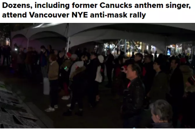 另外, 除夕夜,有数百人在温哥华美术馆外举行了迎接新年的化妆舞会,以抗议政府对新冠施加的限制。