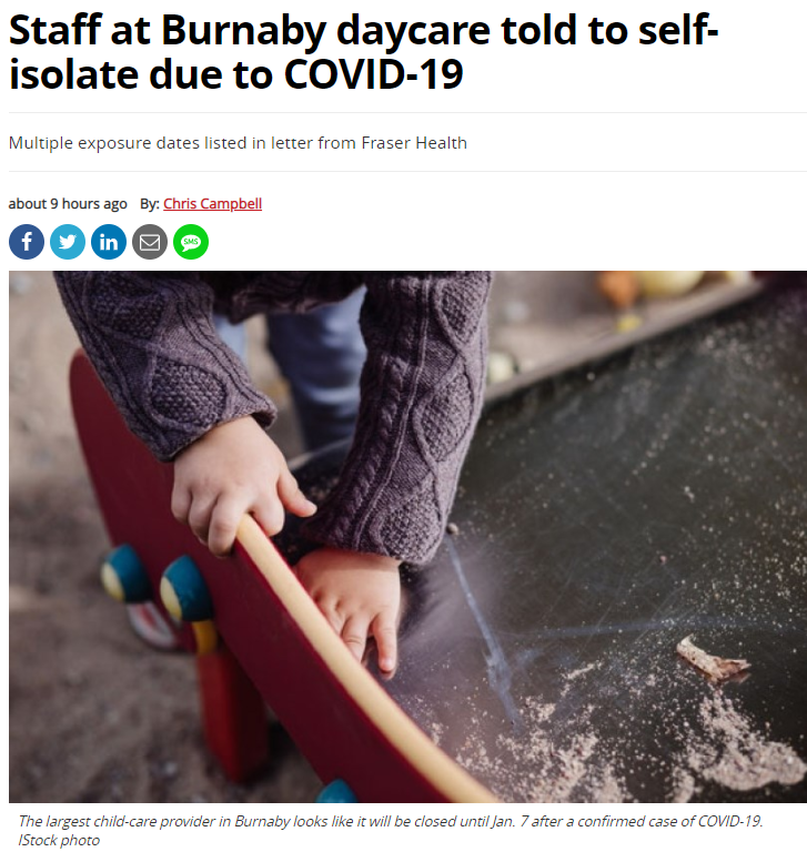 最新!BC确诊数字回落!本拿比最大托儿所紧急关闭 300家隔离…