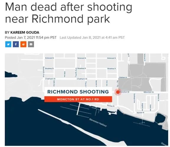 昨天(1月7日)晚间,华人聚集城市——列治文惊传枪击案,一名男子身亡