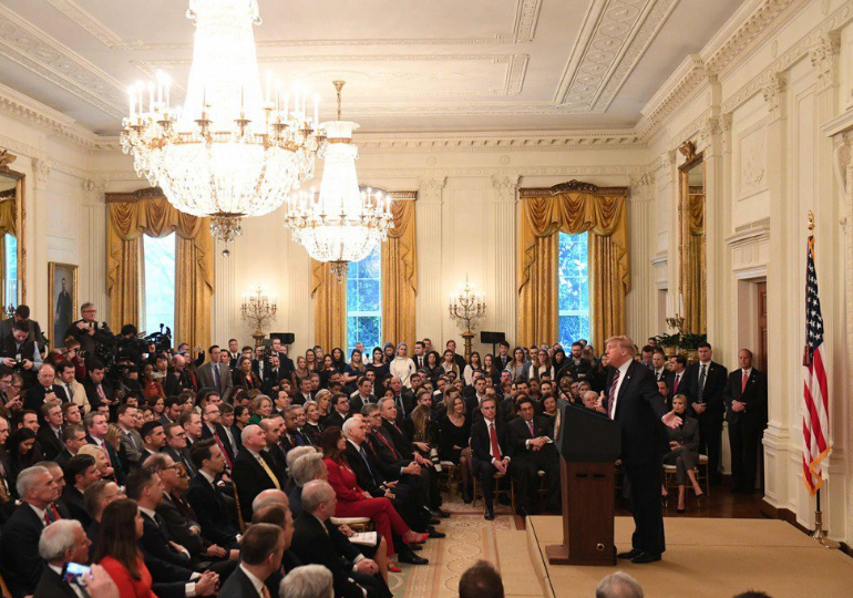 川普在2019年的弹劾案中被判无罪之后,在白宫发表声明。图/法新社