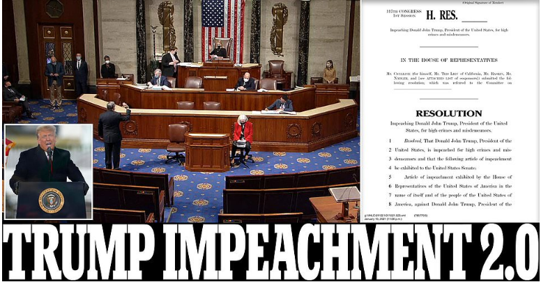 决议案称,川普总统严重危害了美国及政府机构的安全,威胁民主制度,干涉权力的和平过渡,并危及政府的地位,背叛了民众对总统的信任,使美国人民受到伤害。