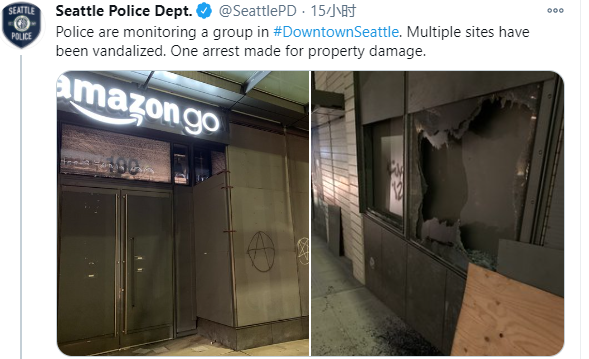 西雅图市区的多个商店橱窗被破坏。