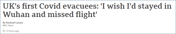 英国首批撤离武汉的公民:“我希望当时错过航班,留在武汉”(BBC1月31日报道截图)