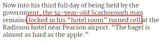 多伦多太阳报评论称,史蒂夫所在的酒店房间,已经变成了监狱牢房。