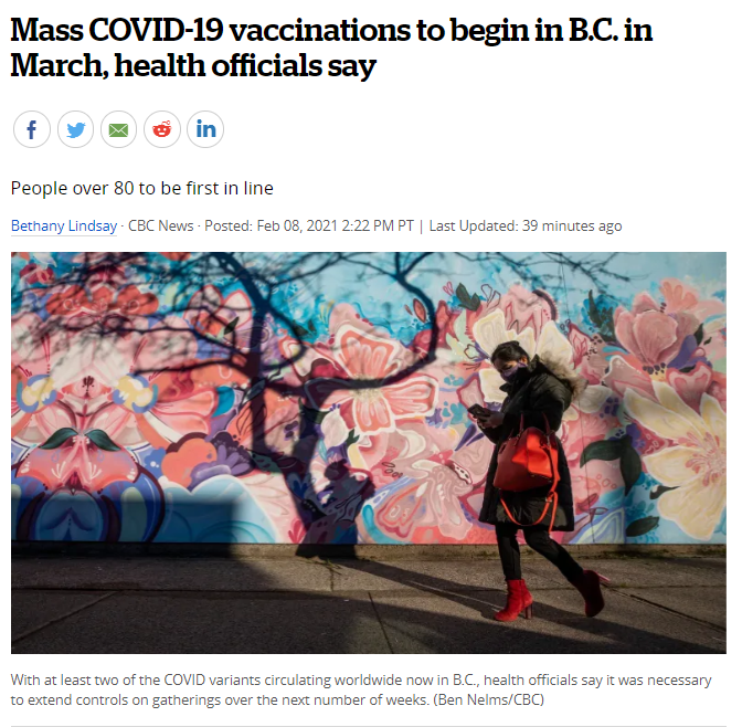 BC省卫生官员邦妮·亨利 (Bonnie Henry)博士 同一天也宣布, 越来越多的新冠疫苗正在送往BC省。