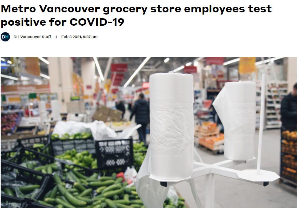 Superstore, 本拿比#1105 Eaton Centre 4700 Kingsway, 2名员工确诊, 最后上班时间均为1月31日。 这家superstore位于Metrotown, 此前已经多次爆出 有员工感染新冠病毒;