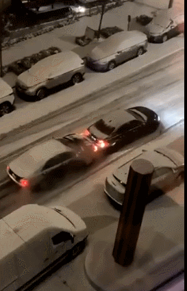 市中心经常被吐槽的高坡 暴雪天成了滑雪爱好者们的最爱