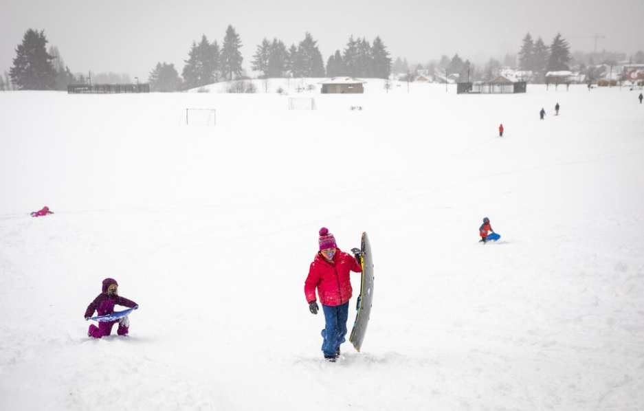 西雅图的暴雪天:车祸暴增300%,90岁老太雪中步行6英里打疫苗,花式玩雪