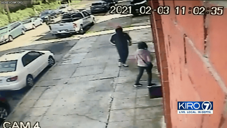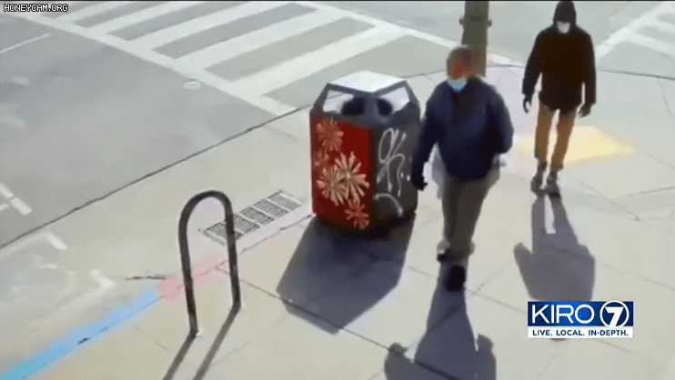 亚裔仇视情绪蔓延至全美图:亚裔被推倒在地(图源:KIRO7)