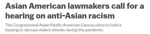 纽约州民主党众议员哈基姆·杰弗里斯(Hakeem Jeffries)说:“亚裔美国人社区正面临一场无法容忍的仇恨危机,我们不会容忍反亚洲的偏见,我们不会容忍这些仇恨犯罪。我们所有人都与亚裔美国人社区站在一起,直到我们能够结束这场灾难。”