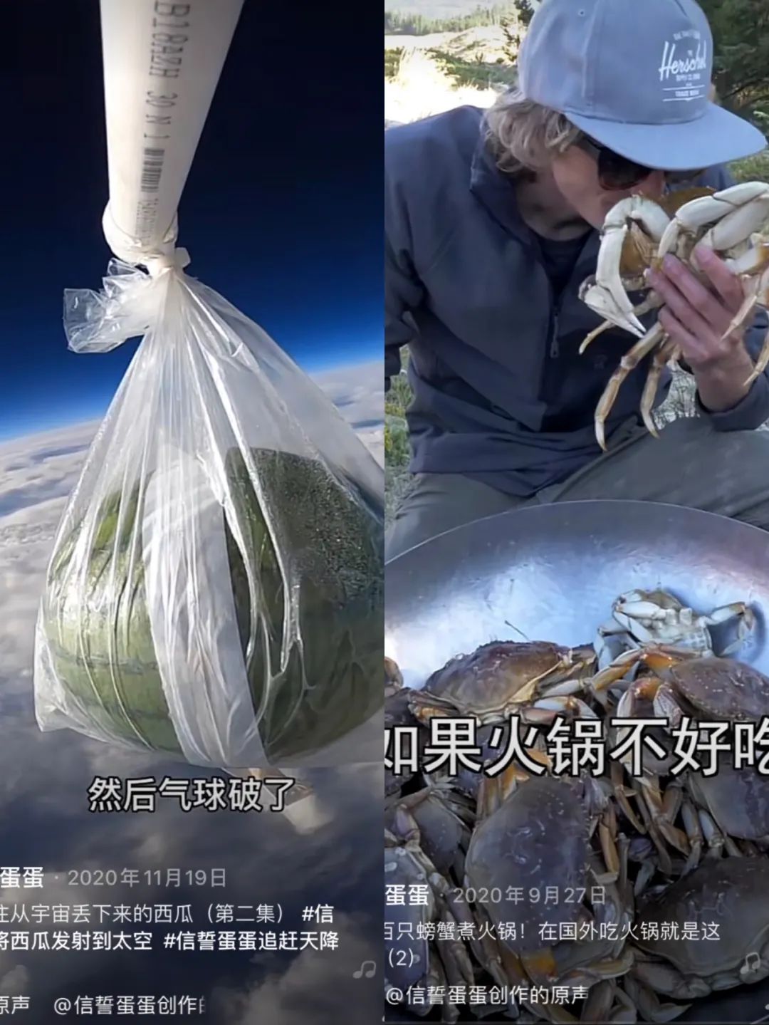 除了这次挑战世界最长滴滴车程记录,这两位小哥也会做一些别的不可思议的事,比如火锅螃蟹;比如把西瓜送到3000英尺的高空,然后尝试在地面接住它;比如在跳伞的时候吃世界上最大的辣椒……