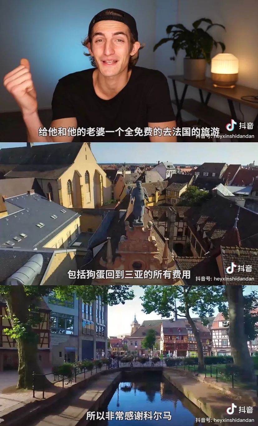 不用担心,法国科尔马市全包了,不仅滴哥回三亚的路费全包了,还送了滴哥一家免费的法国游。