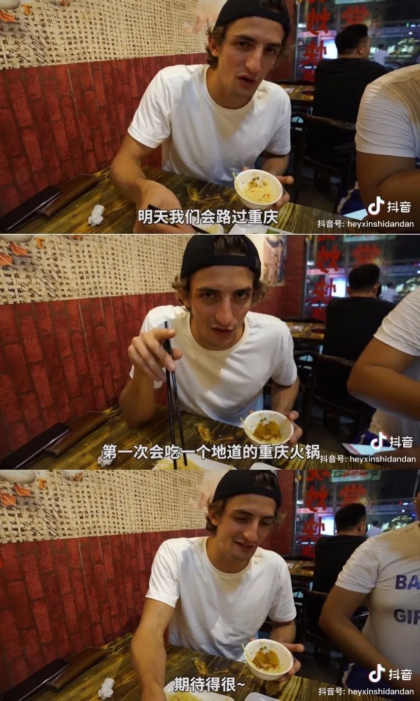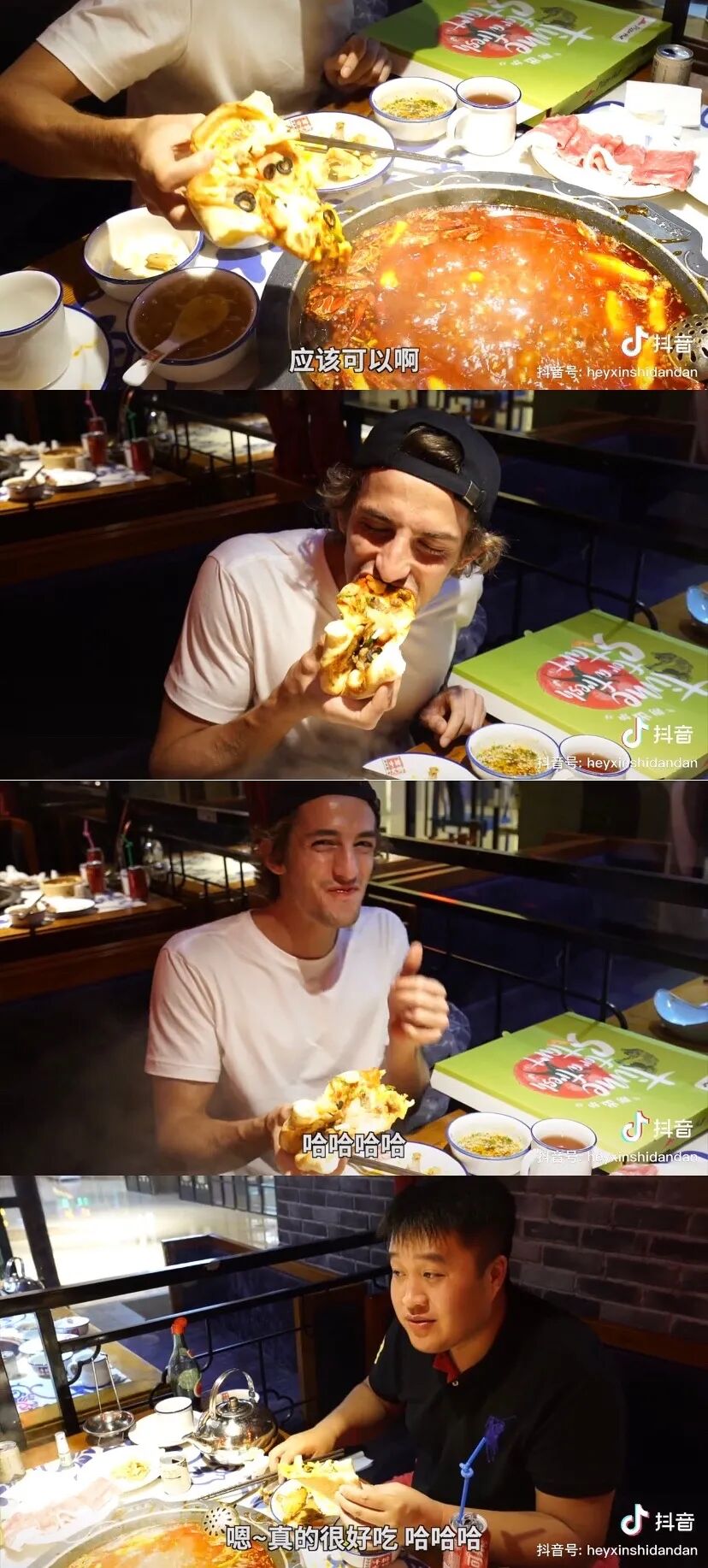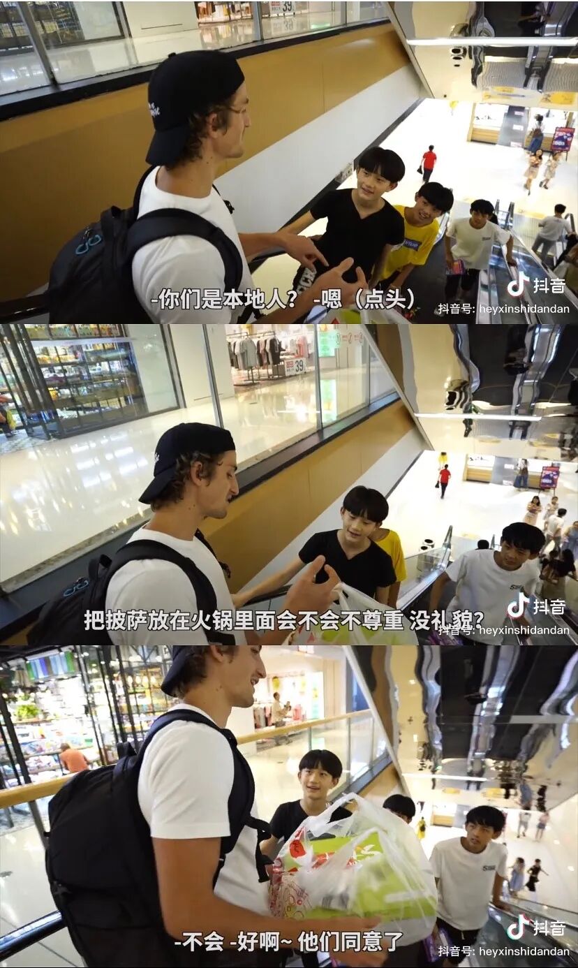 外国小哥人也是真的很好了,坐电梯时遇到了重庆的小朋友,还问小朋友,把披萨放在火锅里面会不会显得不尊重当地文化。