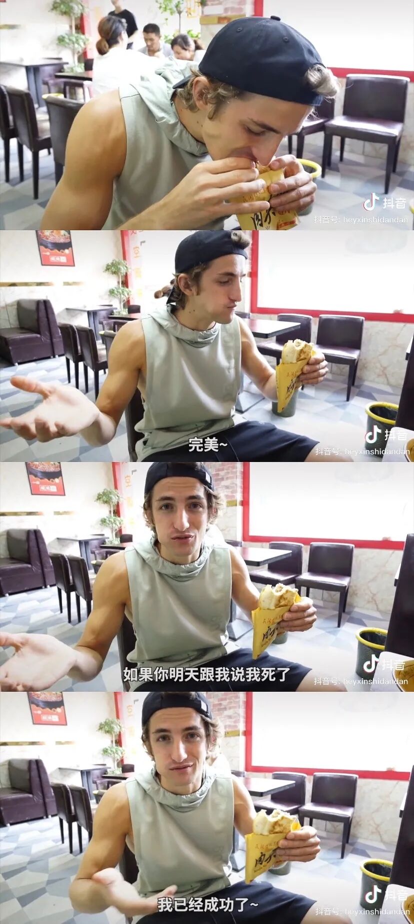 钢蛋吃着肉夹馍说:如果你跟我说明天我死了也没关系,我已经成功了。(小哥哥,不要死啊!中国美食还有好多呢!)
