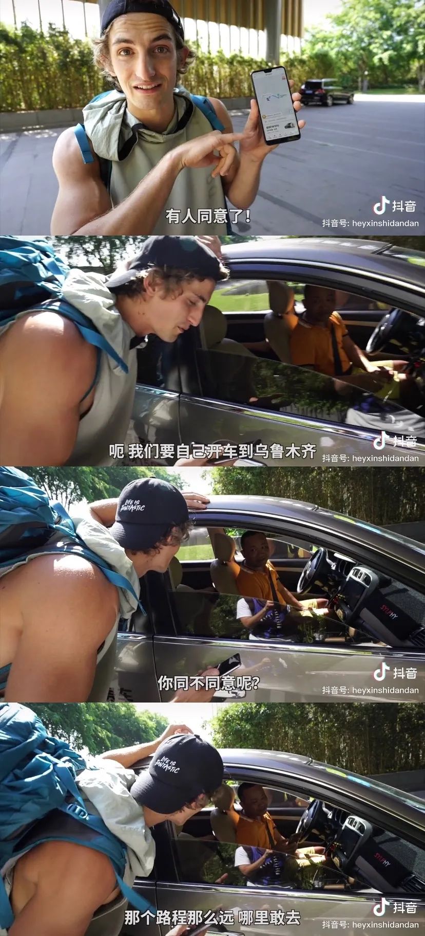 终于,有了新的进展,一位滴哥缓缓开过来,这个滴哥得知他们真的要从三亚到乌鲁木齐后,竟然毫不犹豫地接单了!