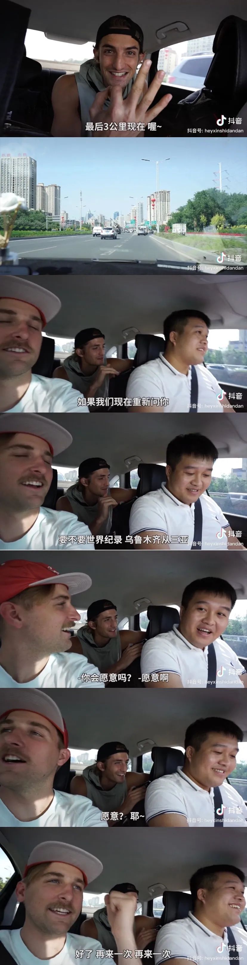 最后3公里的时候,外国小哥哥又问了我们的滴哥一个问题:如果现在重新问你,从乌鲁木齐到三亚,你还愿意吗?