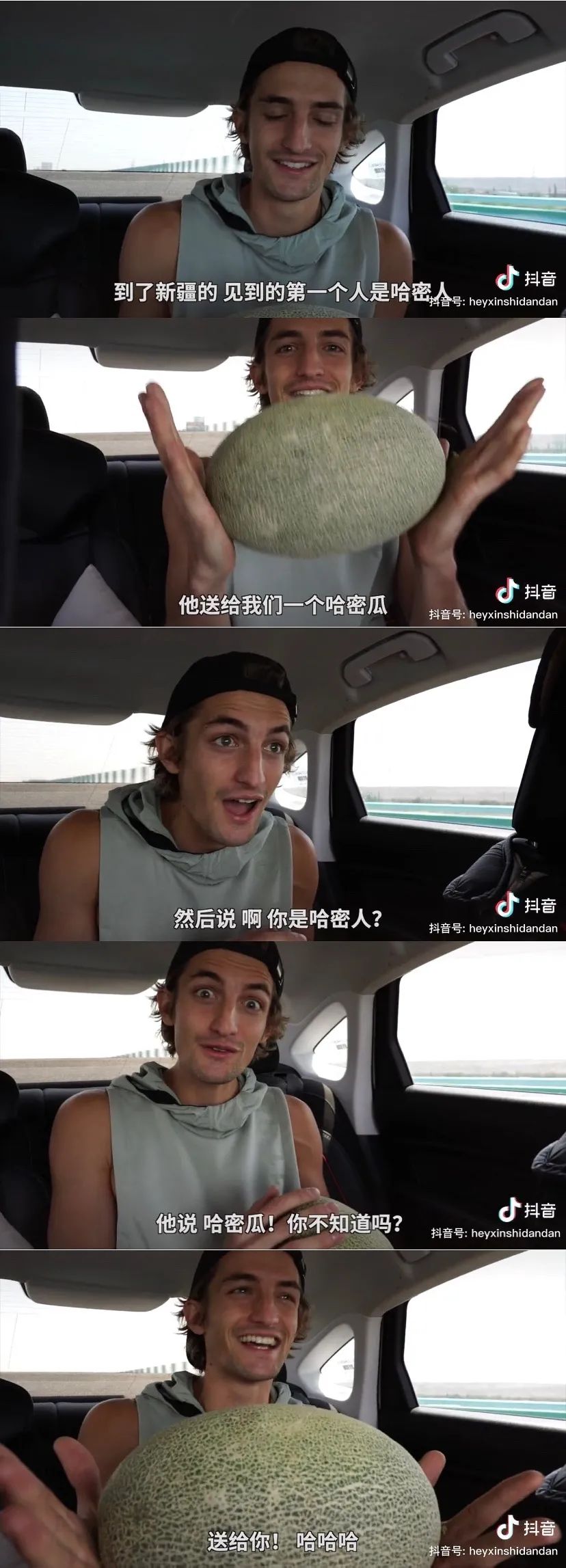 新疆的人的热情果然名不虚传,他们遇到的第一个新疆人是哈密人,并送了他们一个哈密瓜。