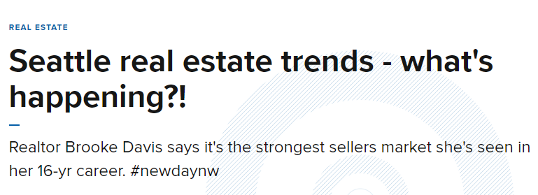 据King5报道,西雅图房地产经纪人布鲁克·戴维斯(Brooke Davis)介绍了西雅图地区现在的房地产市场以及未来趋势。