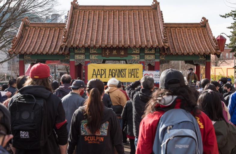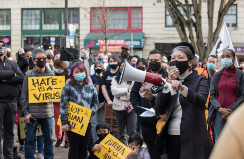 3月13日,西雅图中国城Hing Hay Park组织了一场集会,数百人聚集在一起反对针对亚裔的仇恨犯罪。