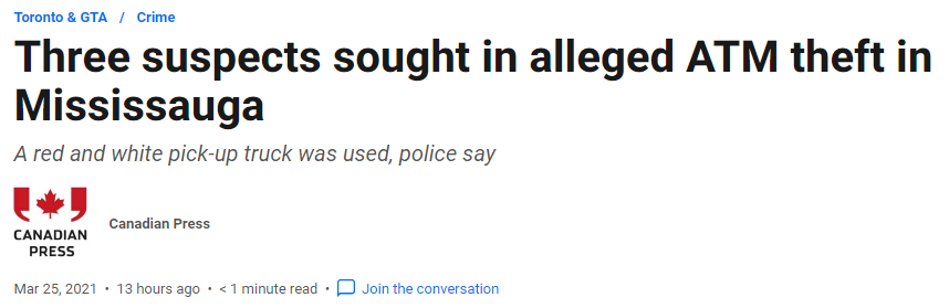 [多伦多新闻]太猖狂!3贼半夜冲进超竟直接搬走ATM!多伦多治安这么差...