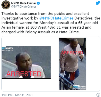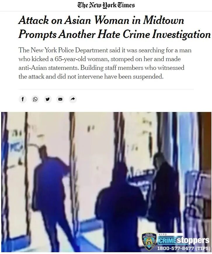 [纽约新闻]纽约街头袭击65岁亚裔老太的黑人壮汉已落网 ! 曾因弑母...
