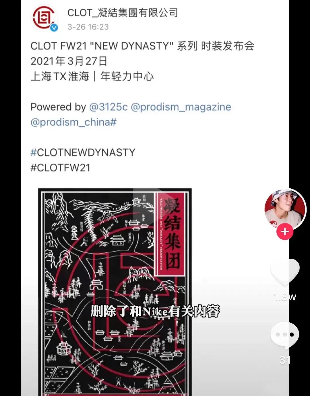 紧接着,CLOT的官博、微信公众号上,所有关于耐克的商标、宣传,全都被删除。