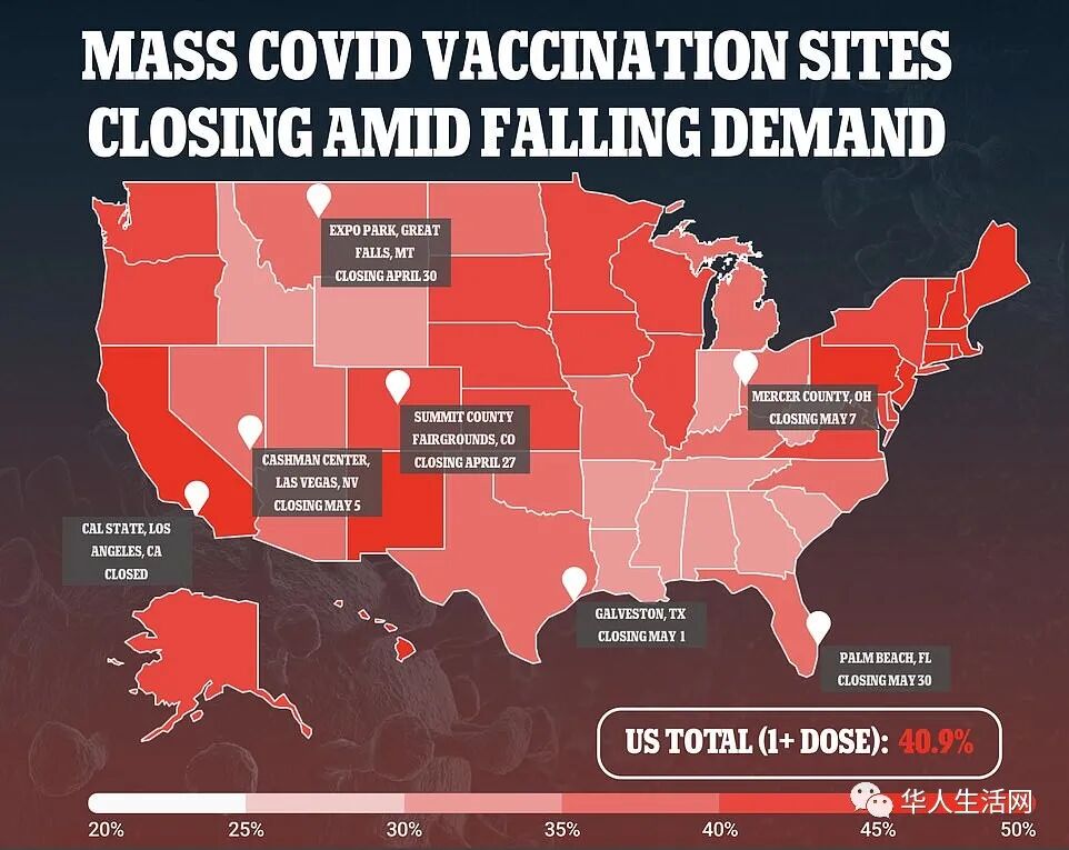 尽管美国只有28%的人口接种了疫苗,但从加州到德州,从俄亥俄州到密西西比州,美国的疫苗接种点正在关闭....