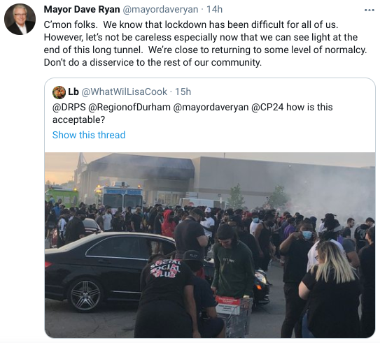 Pickerging市长Dave Ryan在Twitter上痛批这件事“让人无法接受”,并形容参与者的行为“太疏忽”了。