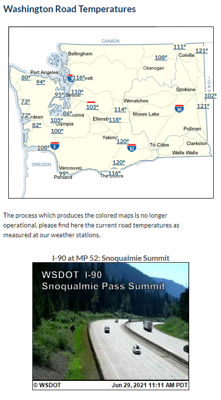 周一,华盛顿西部一些地区的气温接近110度,路面温度达到120度。