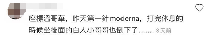 其中有名温哥华的网友评论,自己也打完第一针莫德纳后在休息区等候的时候,坐在后面的一个白人小哥也突然倒下了......