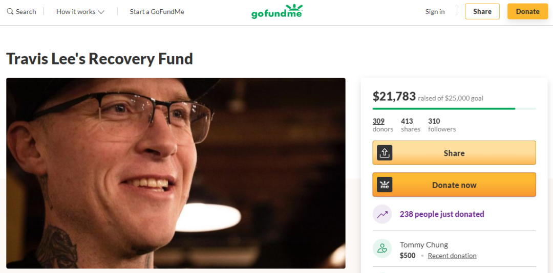 简称,她不确定特拉维斯痊愈后,是否能够继续做厨师。他的医药费会很可观,目前已经在众筹网站GoFundMe上创建了页面.