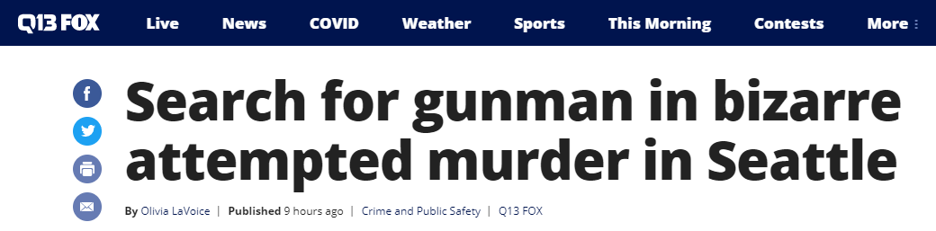美西时间7月7日,据FOX媒体报道,警方正在寻找在西雅图犯下了一起离奇谋杀未遂案的枪手。
