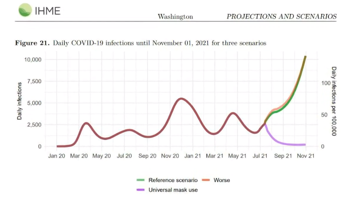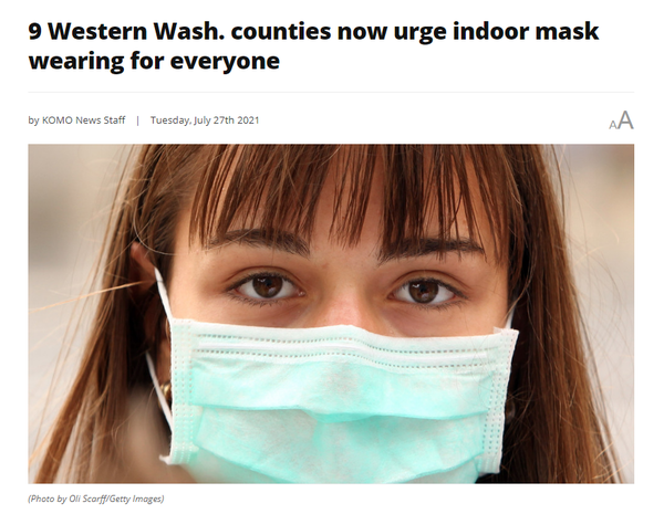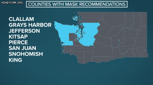 很快,金县、皮尔斯、基特萨普(Kitsap)、克拉拉姆(Clallam)、杰斐逊、圣胡安(San Juan)、斯卡吉特(Skagit)和格雷斯港(Grays Harbor)各县的卫生官员也加入了建议行列,希望所有居民在不清楚室内其他人是否接种疫苗的情况下佩戴口罩。