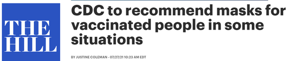 当时该机构建议,完全接种疫苗的人可以在大多数室内和室外环境下不戴口罩,而未接种疫苗的人仍然被要求戴上口罩。