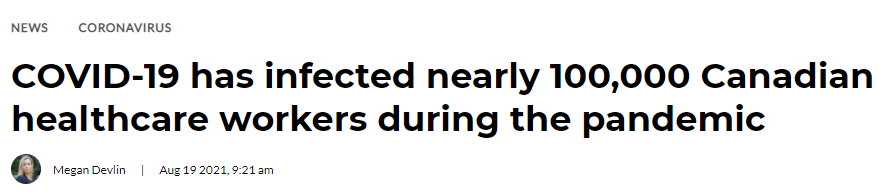 这些数字来自加拿大健康信息研究所发布的最新数据,该研究所跟踪了从疫情开始到2021年6月15日的卫生工作者的感染情况。