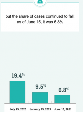 他们指出,尽管医护人员的病例数量持续增长,但COVID-19病例在医护人员中所占比例有所下降。