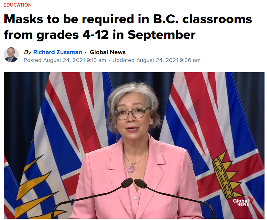 在新闻发布会上,教育厅长詹妮弗·怀特塞德 (Jennifer Whiteside)表示,随着第四波疫情越来越凶猛,未接种人群是主要感染者,省府决定对9月返校计划做出改变,4至12年级学生上课需戴口罩!