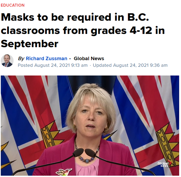 8月24日,BC省教育厅和卫生厅召开新闻发布会,正式更新9月份复学计划——4至12年级学生及教职员工下个月开学时将强制佩戴口罩!